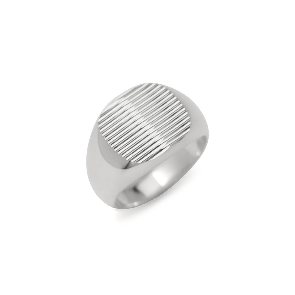 丸みを帯びた幅約12mmのスクエア型の印台リングをベースにしており、柔らかい印象のあるピンキーリングを想定したサイズ感となっています。